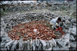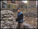 When a building burned down on Montreal’s St. Laurent Blvd. the fire left a huge hole in its wake. Like a painter before a blank canvas I immediately saw the potential in that arena of space. I spent a weekend, working in rain, to build stone sculptures composed of the bedrock of the building.