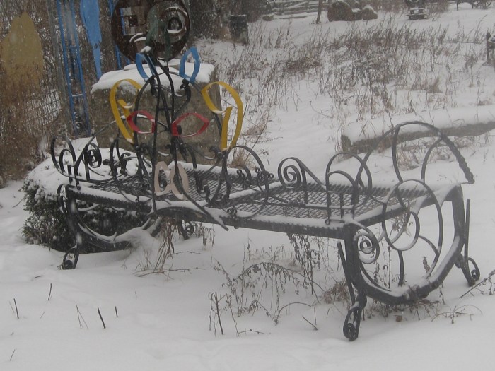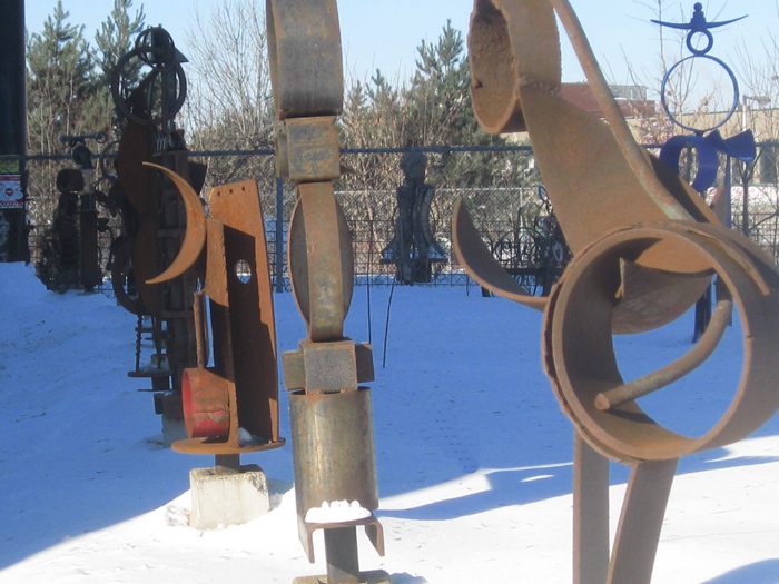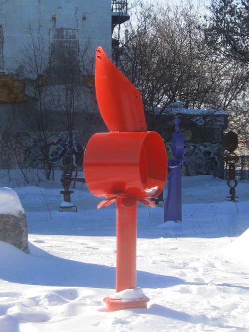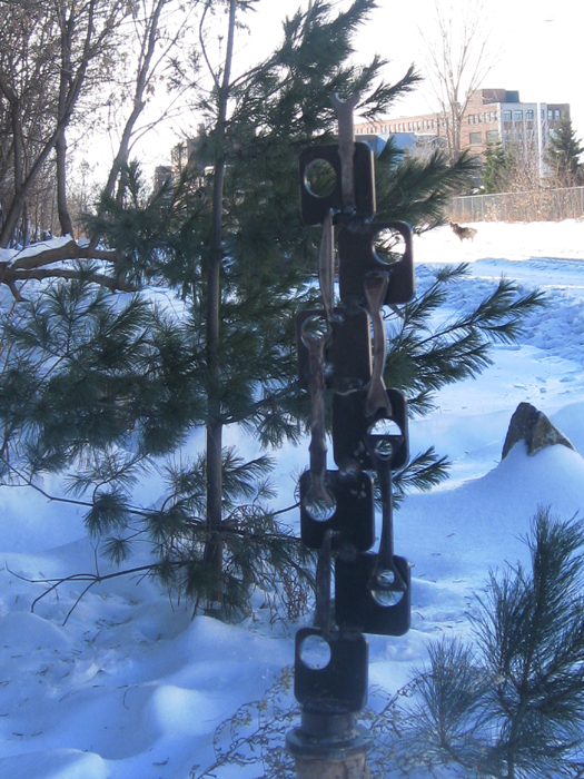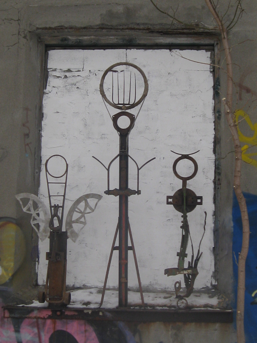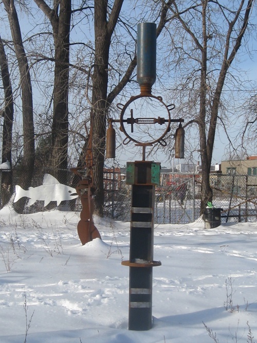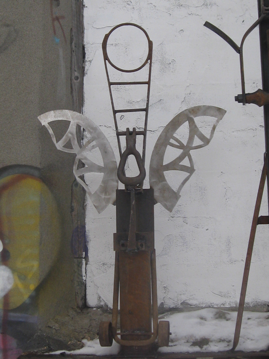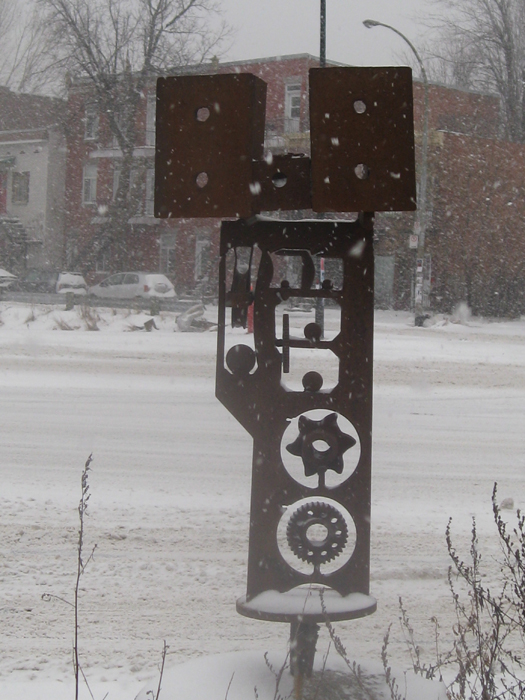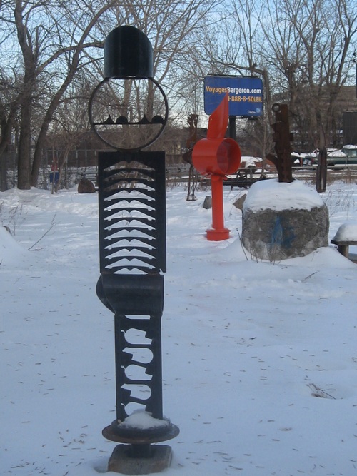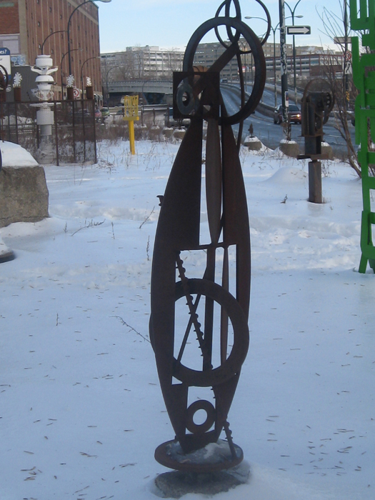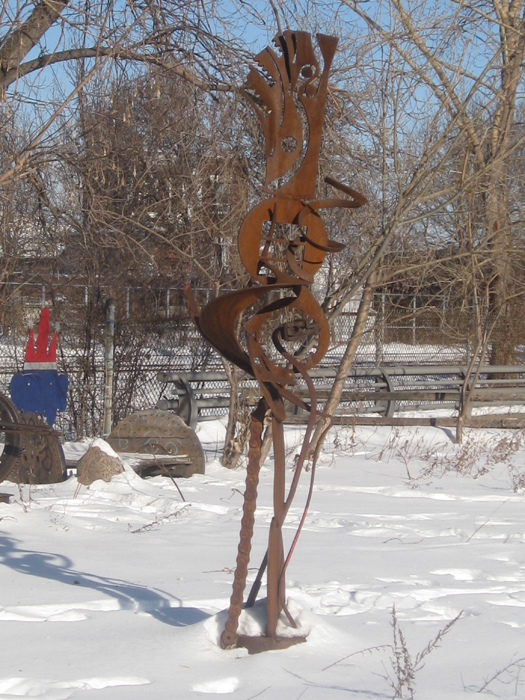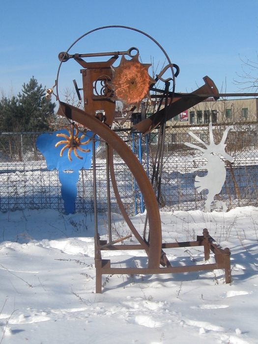 For the past twelve years I have been installing sculpture in a lot located at Van Horne and St. Urbain in Montreal. The site acts as Gallery for my more whimsical work and is always evolving and changing as new pieces are added and edited all the time. Many of the pieces are kinetic and move with the currents of the wind and the seasons.